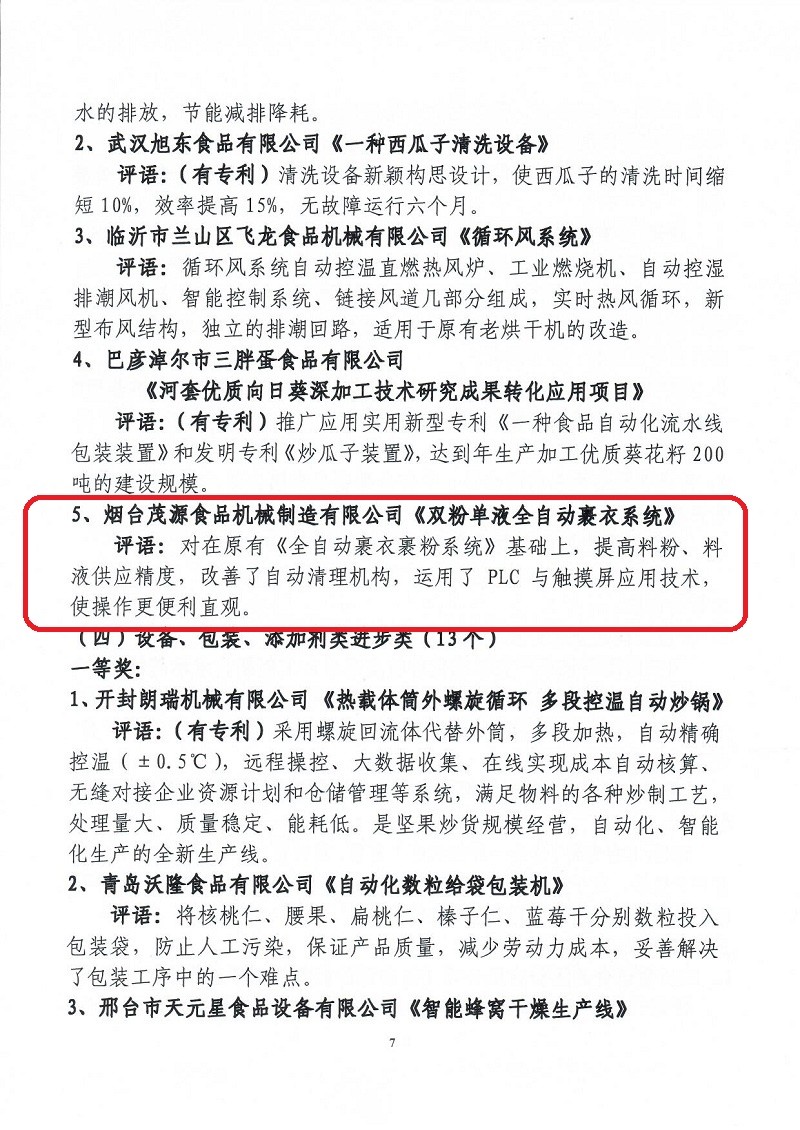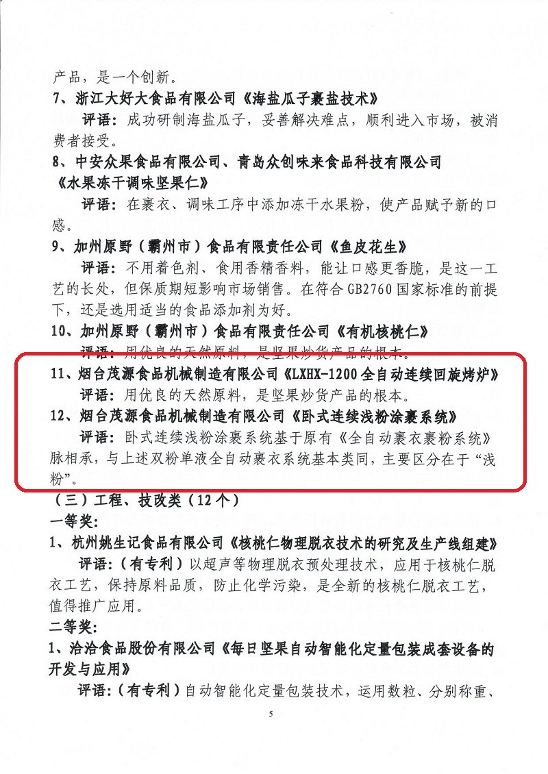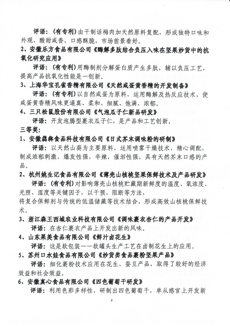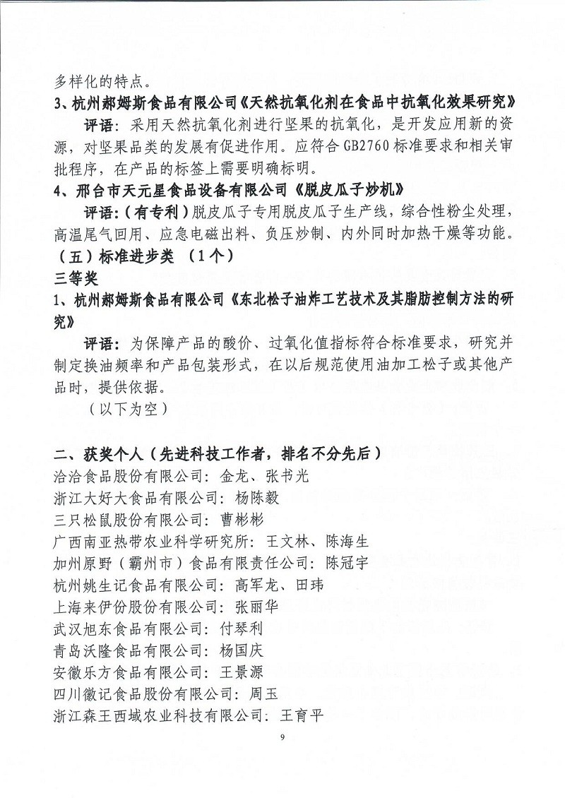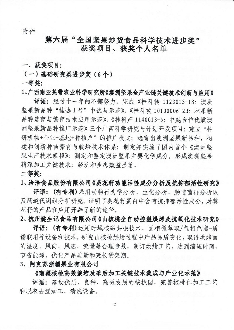 關(guān)于表彰第六屆(2018-2019年度)全國堅(jiān)果炒貨食品行業(yè)科學(xué)技術(shù)進(jìn)步獎的通知