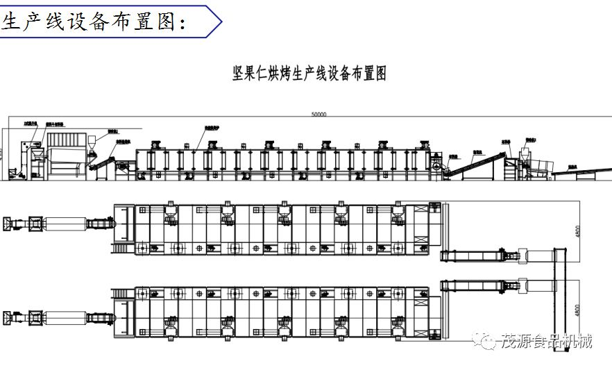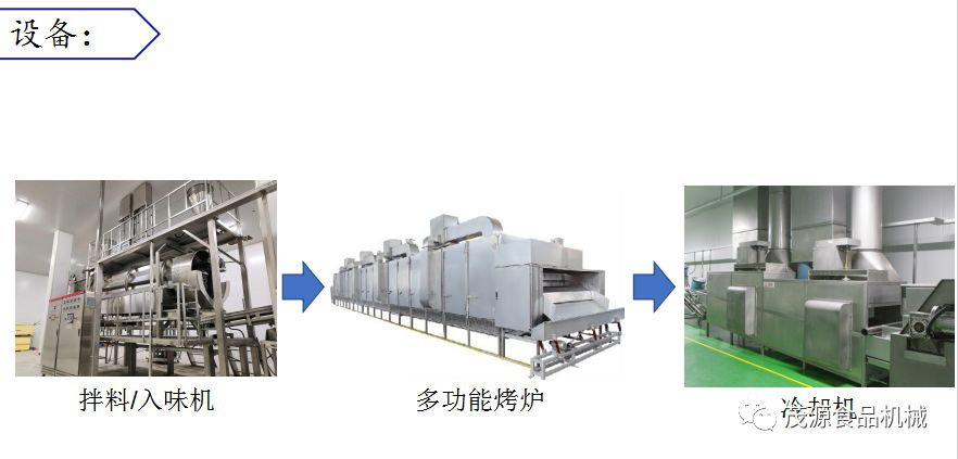 簡易型:原料→裹衣→烘烤→拌料→烘干→冷卻→包裝